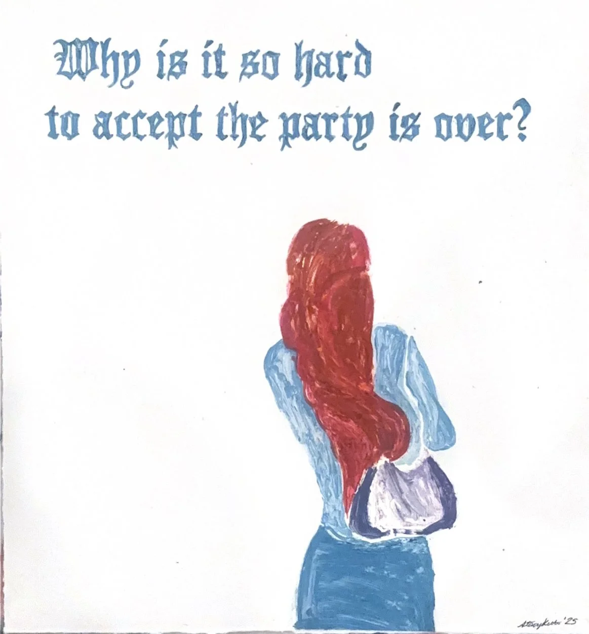 While I was ideating the creation of this project, I was eager to get my hands dirty and get back into fine art after having most of my classes on the computer for graphic design. I first got into the arts by drawing and painting as a little girl. As I reached the end of high school and started college, I expanded into digital and graphic design art. I decided to combine the two for this series to show my side of fine arts and handmade art with typography. From SZA’s song, Drew Barrymore, “Why is it so hard to accept the party is over?” It is a line that resonates with me and my life experiences over the past years. It's hard to return to your normal self and carry on when you're stuck in a sort of post-serotonin haze. Something could feel so real and so right, and all of a sudden, it's what's destroying you most, but all you can highlight are the easy, fun parts.